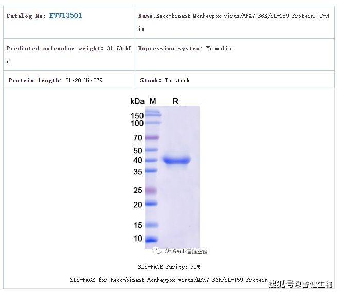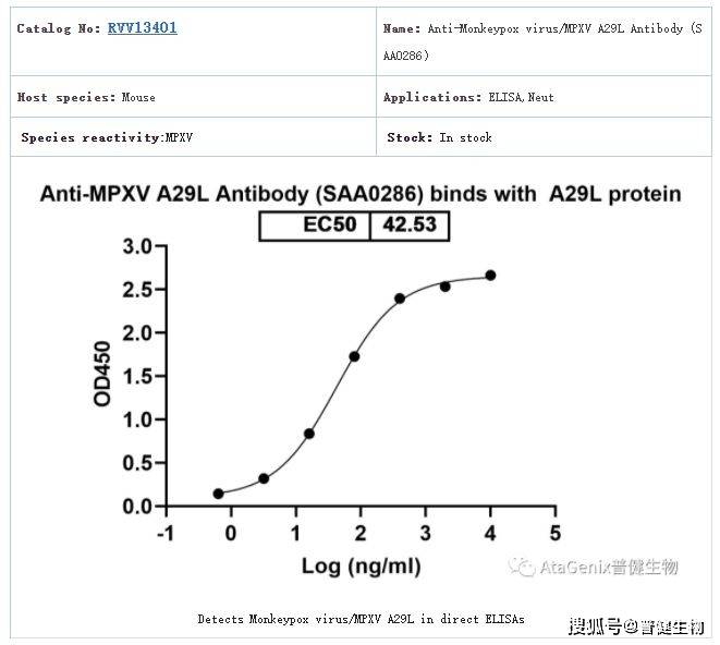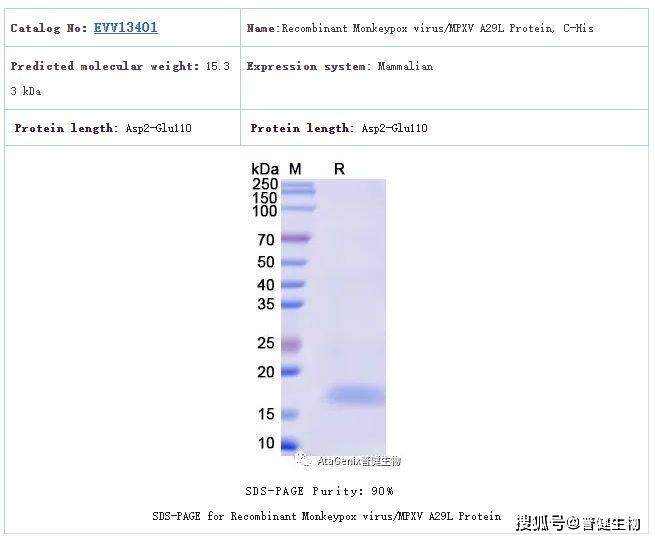 普健生物聯(lián)合法國(guó)Proteogenix頂級(jí)科學(xué)團(tuán)隊(duì),雙方通過(guò)對(duì)猴痘病毒(Monkeypox virus,MPXV)和痘苗病毒(vaccinia virus,VACV)的基因序列進(jìn)行深入研究成功設(shè)計(jì)開(kāi)發(fā)真核系統(tǒng)表達(dá)的猴痘病毒(Monkeypox virus,MPXV)系列核心蛋白A29L、A35R、B6R、M1R、E8L以及相關(guān)具有生物學(xué)活性的中和抗體產(chǎn)品,助力疫苗、藥物、診斷試劑等不同方向的研究。