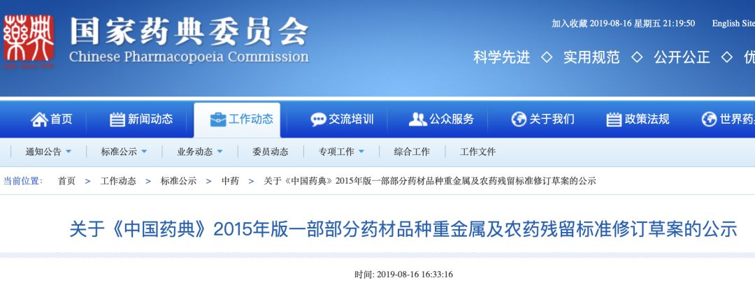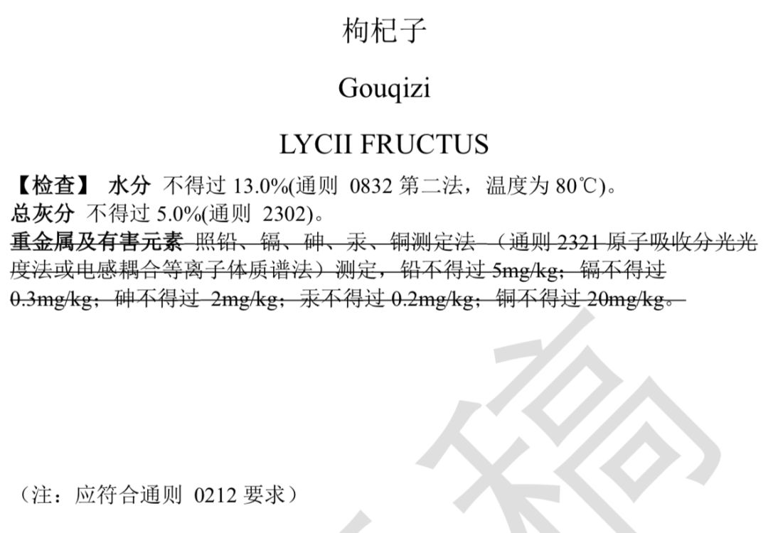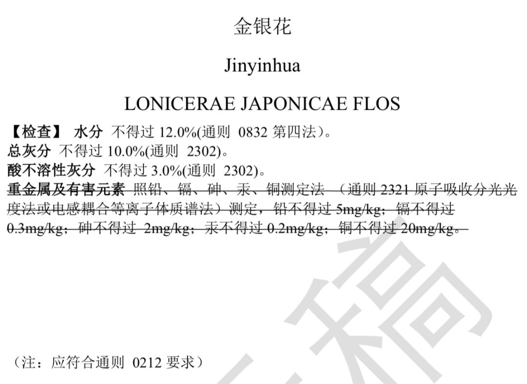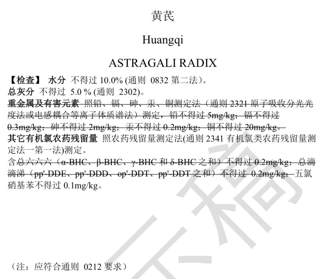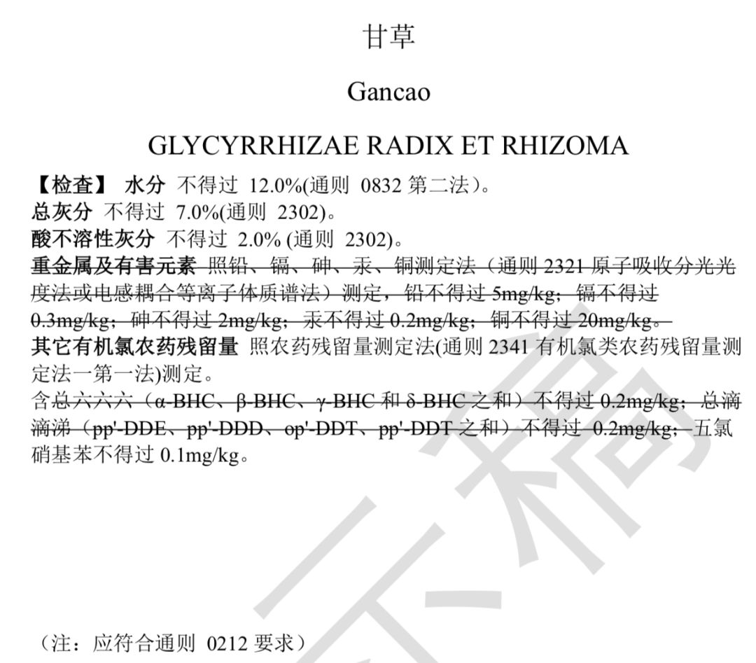 2019年8月16日,國(guó)家藥典委發(fā)布了《0212 藥材和飲片檢定通則公示稿》,對(duì)于植物類藥材,全面要進(jìn)行檢查重金屬及有害元素(鉛、鎘、砷、汞、銅)限度。除此之外,還禁用33種農(nóng)藥。