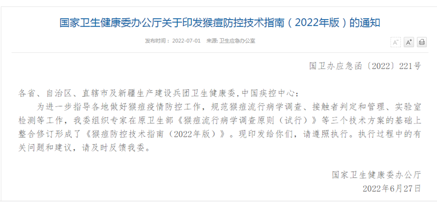 關(guān)于印發(fā)猴痘診療指南(2022年版)的通知