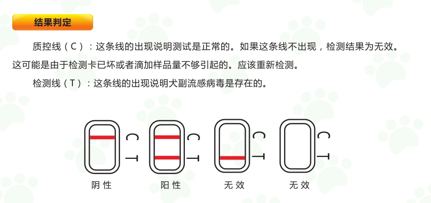 快速篩查犬鼻腔分泌物,喉嚨分泌物,唾液中的犬副流感病毒。