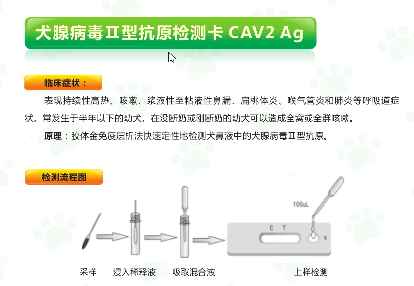 快速篩查犬眼內(nèi)分泌物,鼻液,唾液,血清的犬腺病毒Ⅱ型(CAV Ⅱ)